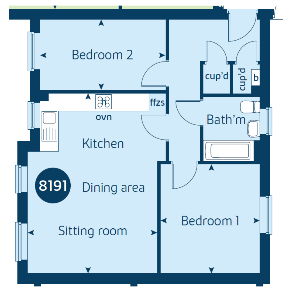 Home 8191 is a modern energy efficient 2-bedroom ground floor apartment featuring an open plan living space, generously sized bedrooms and a modern family bathroom.  Entering through the hallway you will find two handy storage cupboards, modern bathroom and two well proportioned bedrooms. Moving through the apartment you will find the combined kitchen/ sitting /dining room – the perfect spot to unwind or entertain guests.